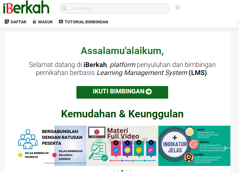 IPARI MELAWI | – Seorang Penyuluh Agama Islam Fungsional Kantor Kementerian Agama Kabupaten Melawi bernama Faisol melakukan sebuah terobosan dengan dengan membuat iBerkah, inovasi untuk pelaksanaan bimbingan pernikahan. Kemarin, Rabu (3 Mei 2023) iBerkah mulai dilaunhing dan bisa dikases melalui link https://iBerkah.id.